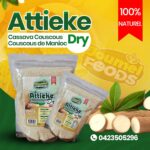 Attieke Cassava Couscous: This is a cassava couscous, with a slightly sour taste, produced from fermented cassava dough. This dough comes from our cassava production sites located in the plateau region. It is rich in carbohydrates as well as vitamins B and C and is generally eaten cooked.